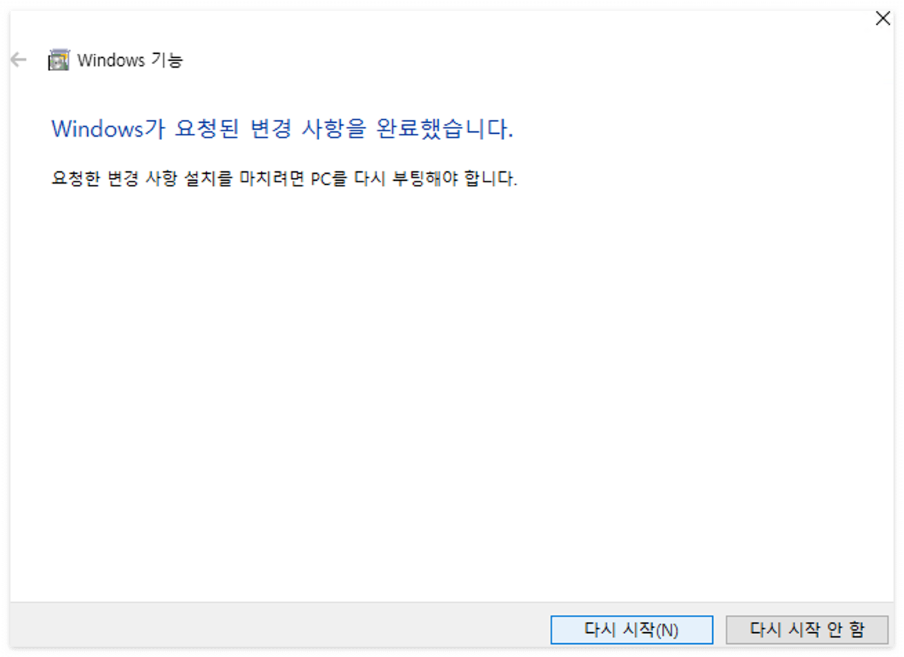 설치가 진행되고 마지막에 "다시 시작" 선택