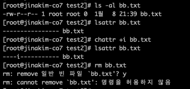 파일 삭제 동작에 대한 검증을 하다보면 file I/O에 문제가 발생하는 상황에서 Exception 처리가 잘 되었는지를 확인하는 경우가 있다. 이런 경우 chattr +i 파일명 command를 사용하여 파일을 삭제하지 못하도록 설정한 후 Exception 처리를 확인하였다.