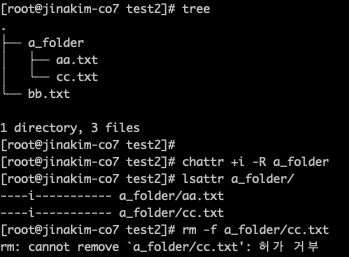 (2) 파일 삭제 못하도록 i 속성을 특정 폴더와 폴더 하위 모든 파일에 부여