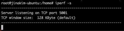 - 위 캡쳐는 패킷을 전송한 Client(서버#2)에 측정된 결과이며, 같은 시간에 아래와 같이 Server(서버#1)에 실행해둔 iperf에서도 서버 입장(?)에서의 측정 결과를 확인할 수 있다.