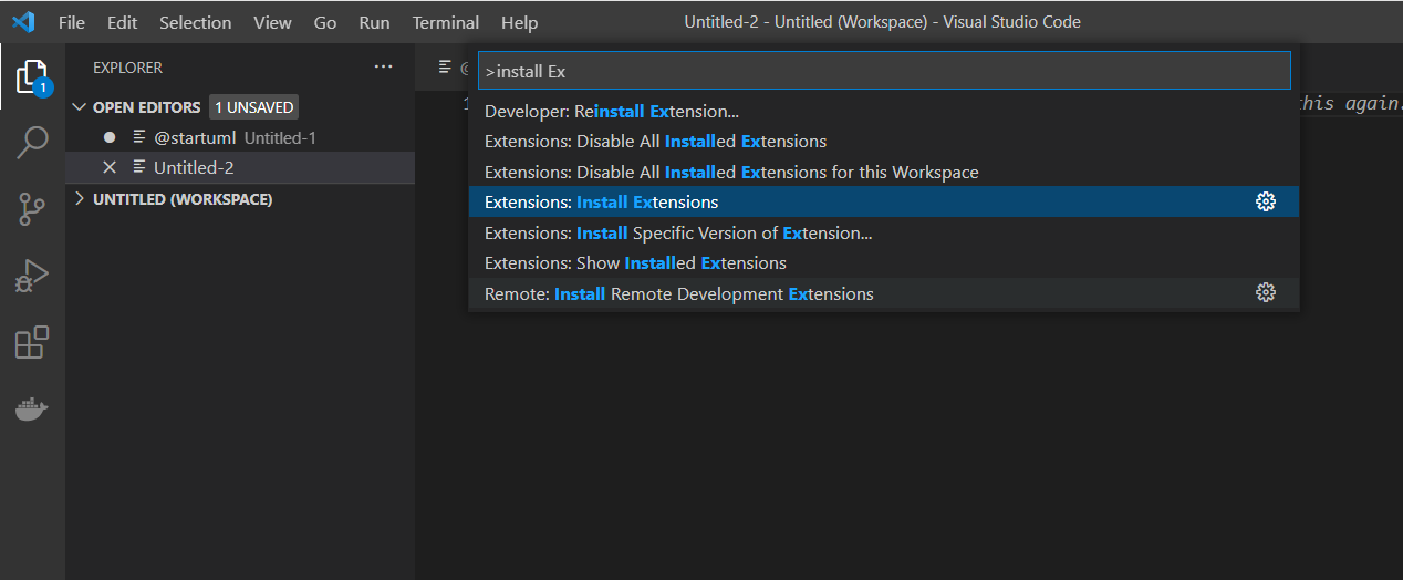 1. 단축키 [ Ctrl + Shift + P ] 를 눌러 상단 입력창에서 "Install Extensions"를 입력 & 선택한다.