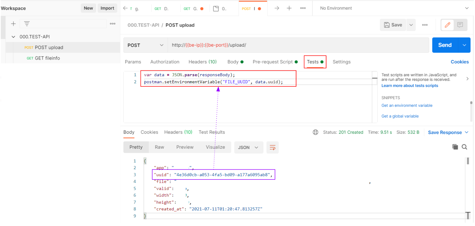 postman.setEnvironmentVariable("FILE_UUID", data.uuid);