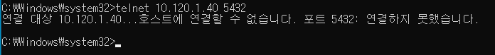 (2) 원격지 Host:Port에 Listen 중인 Application이 있는 경우 (Application 마다 화면은 다를 수 있음. 필자의 경우 Postgresql DB가 Listen 중인 상태)