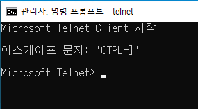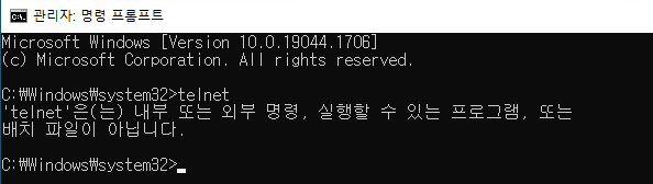 기본 Windows 환경에서는 Telnet 프로그램이 활성화 되어있지 않은 경우가 많다.