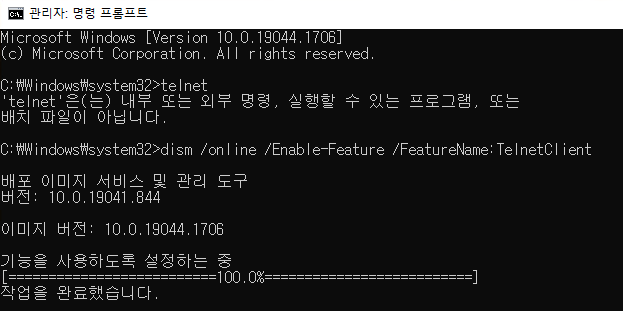 Windows 에서 Telnet 활성화 하기