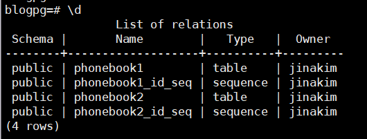 psql -U jinakim -d blogpg