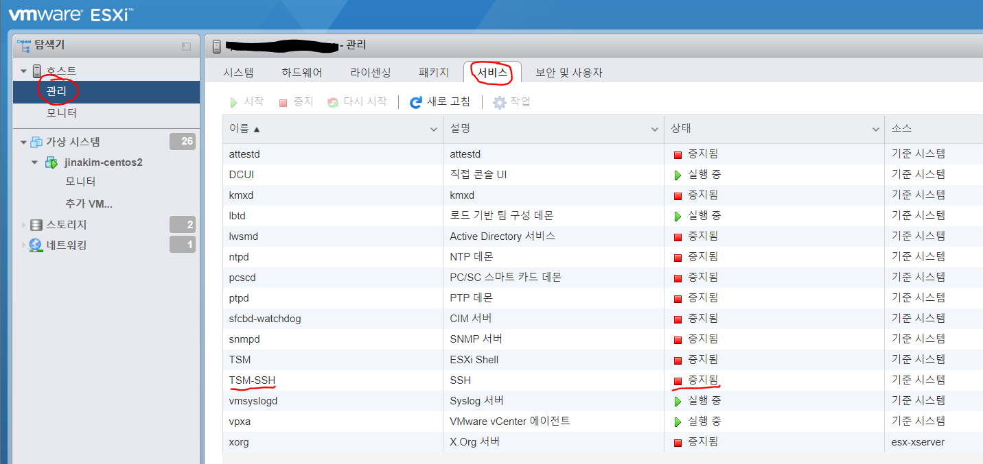 SSH로 접속을 해보니 접속에 실패하였다... 팀분께 문의하여 알아보니 SSH 데몬 실행이 중지되어 있어서 그렇다고 서비스를 Web에서 실행하는 방법을 알려주었다.