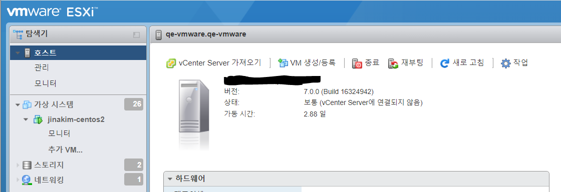 VMWare ESXi 관리 웹페이지 로그인