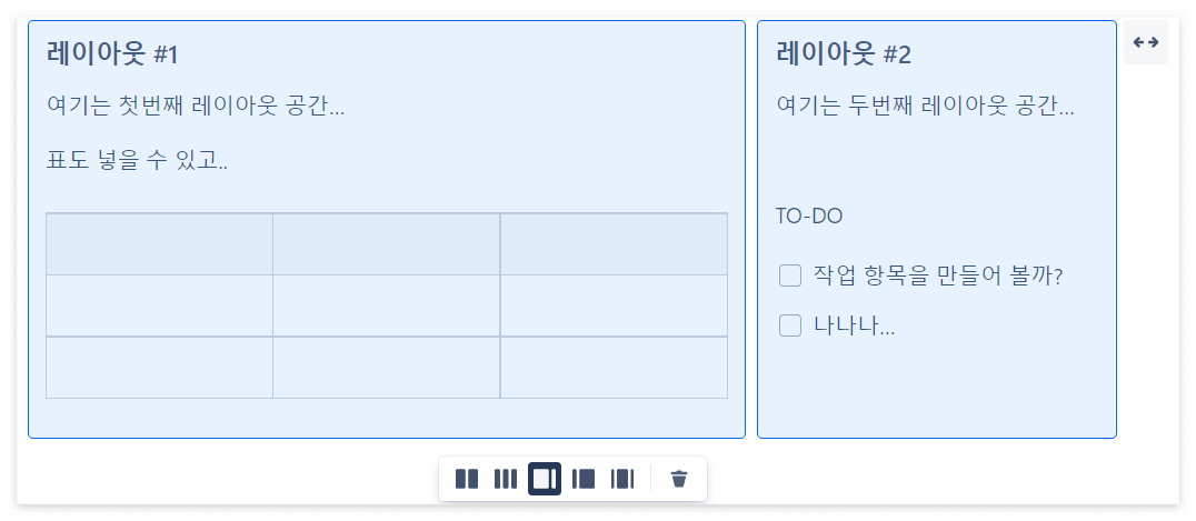 아래 샘플의 경우 우측이 좁고 좌측이 넓은 레이아웃을 선택해 본 모습이다.