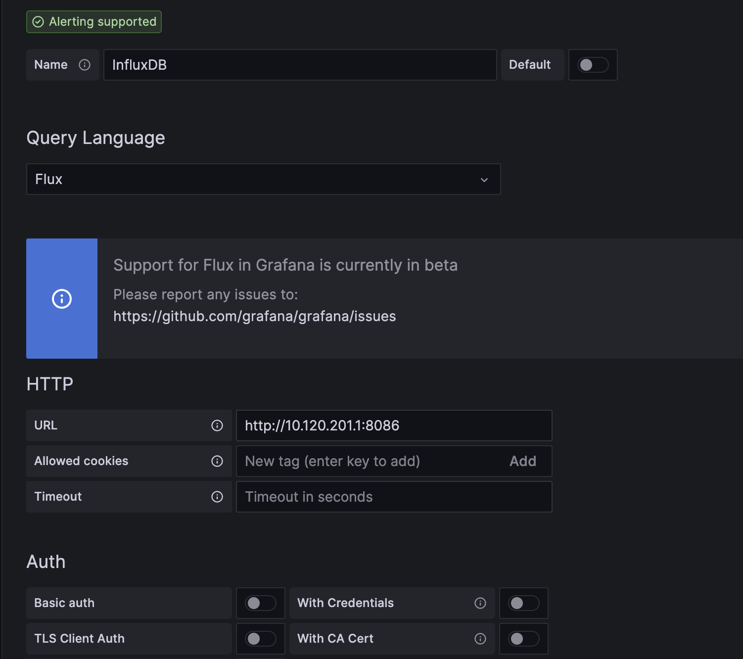 - URL : http://{InfluxDB 접속 IP}:8086