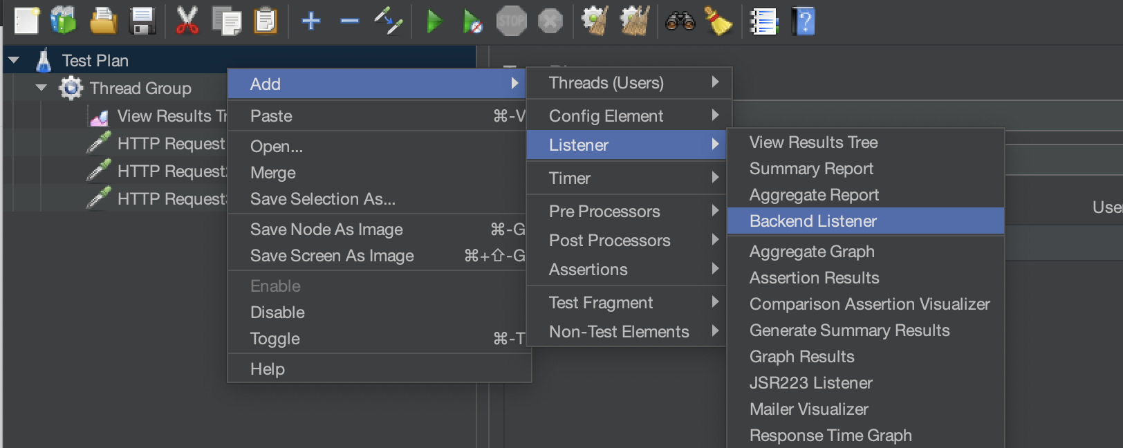 (3) 모니터링 하려는 jmx 파일의 Test Plan에 Backend Listener 추가