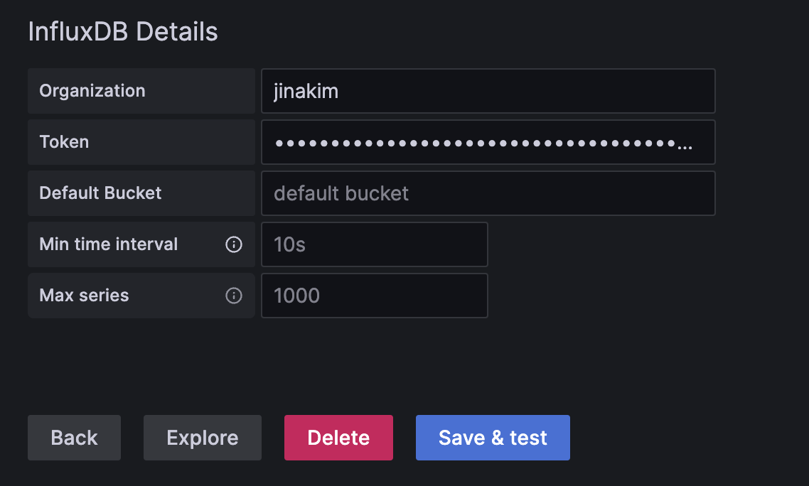 - Token : InfluxDB에서 copy해두었던 API Key token 입력