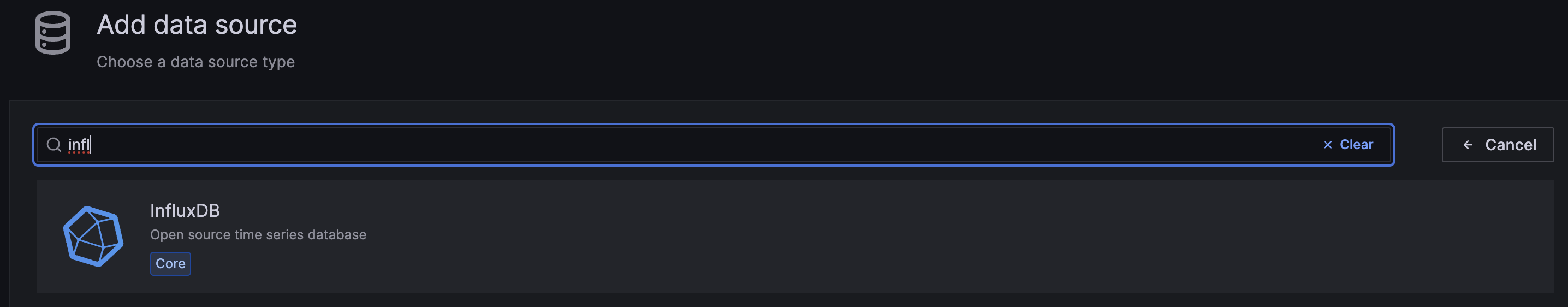 (1) Configuration -> Data Source -> Add new data source 를 통해 InfluxDB 저장소 등록