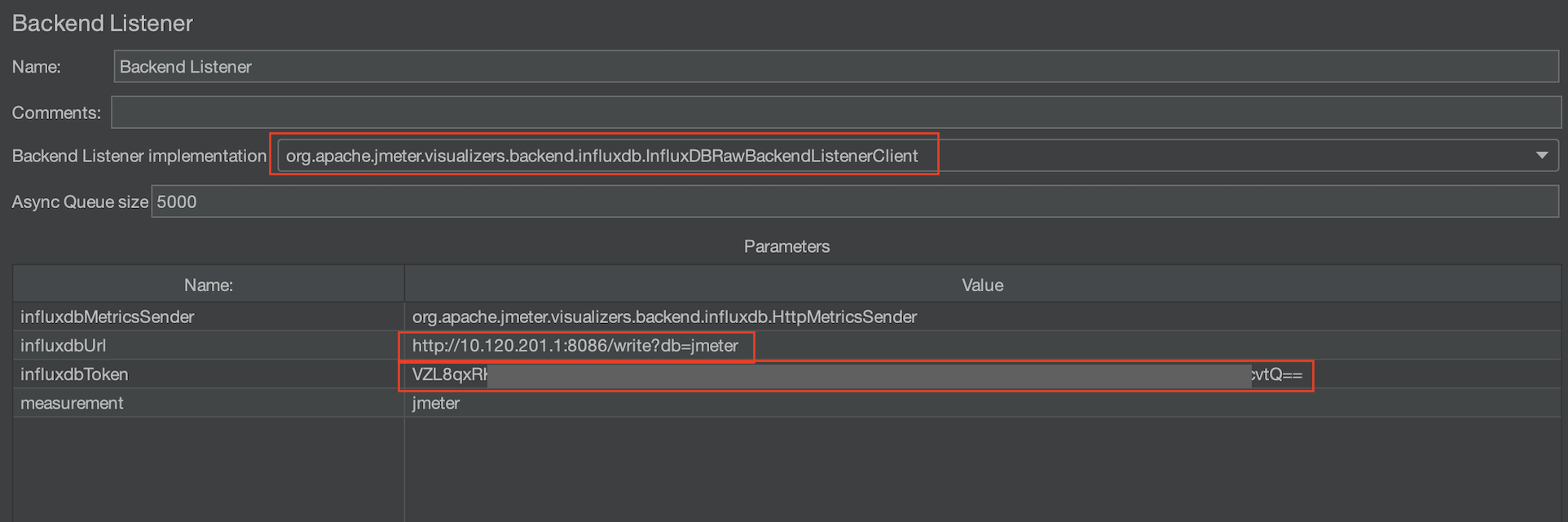 - org.apache.jmeter.visualizers.backend.InfluxDBRawBackendListenerClient 선택